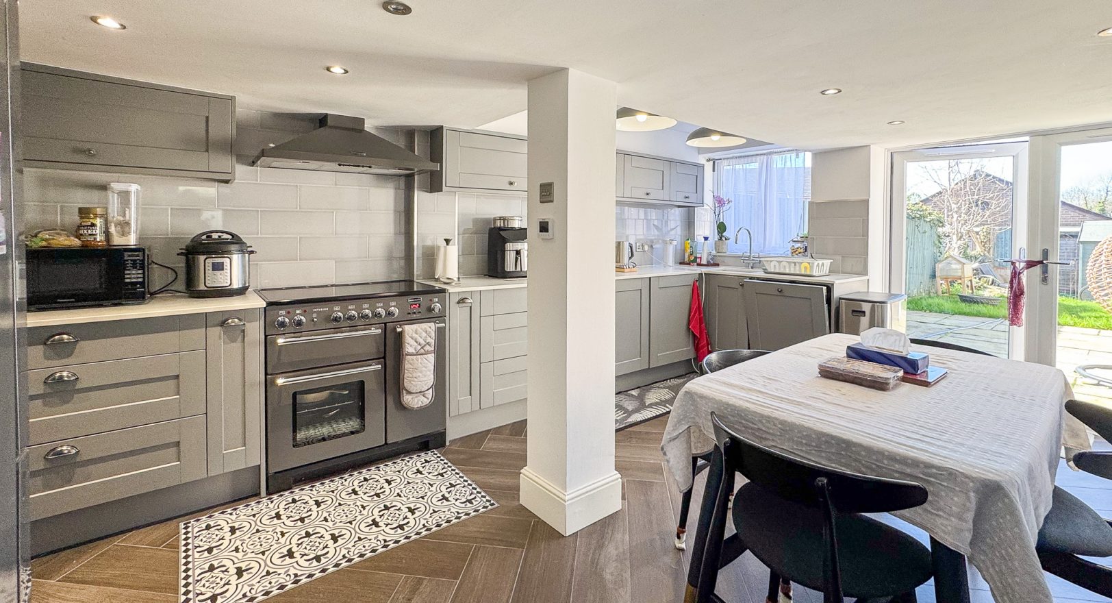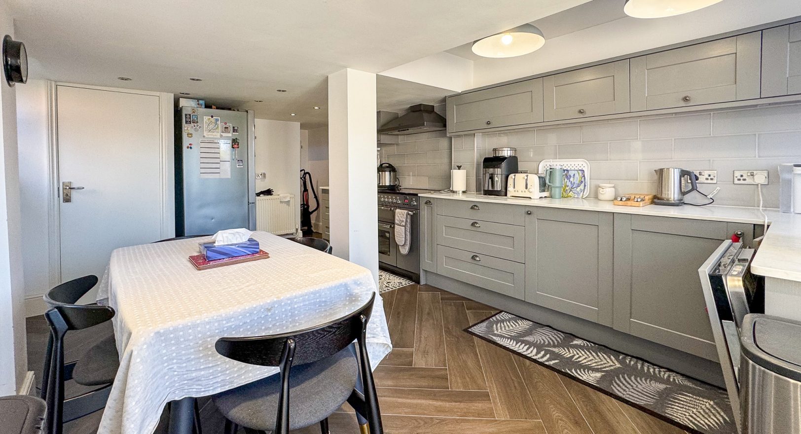 The lower ground floor forms the heart of the house, comprising a modern kitchen/breakfast room with integrated appliances, space for dining and direct access to the rear garden. A WC and useful storage complete this level.