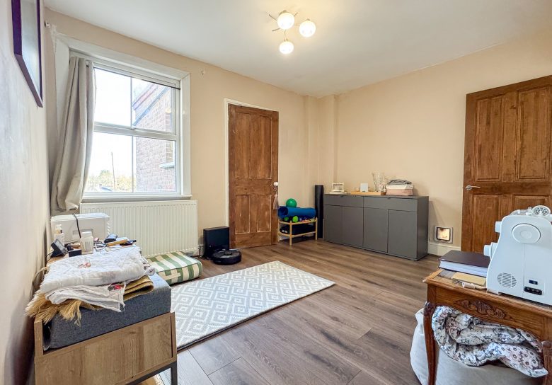 A practical entrance porch leads into the living room, where a bay window adds to the home’s period appeal. There is also a separate dining room, together with a ground floor bedroom/study offering flexibility for guests, working from home or family use.