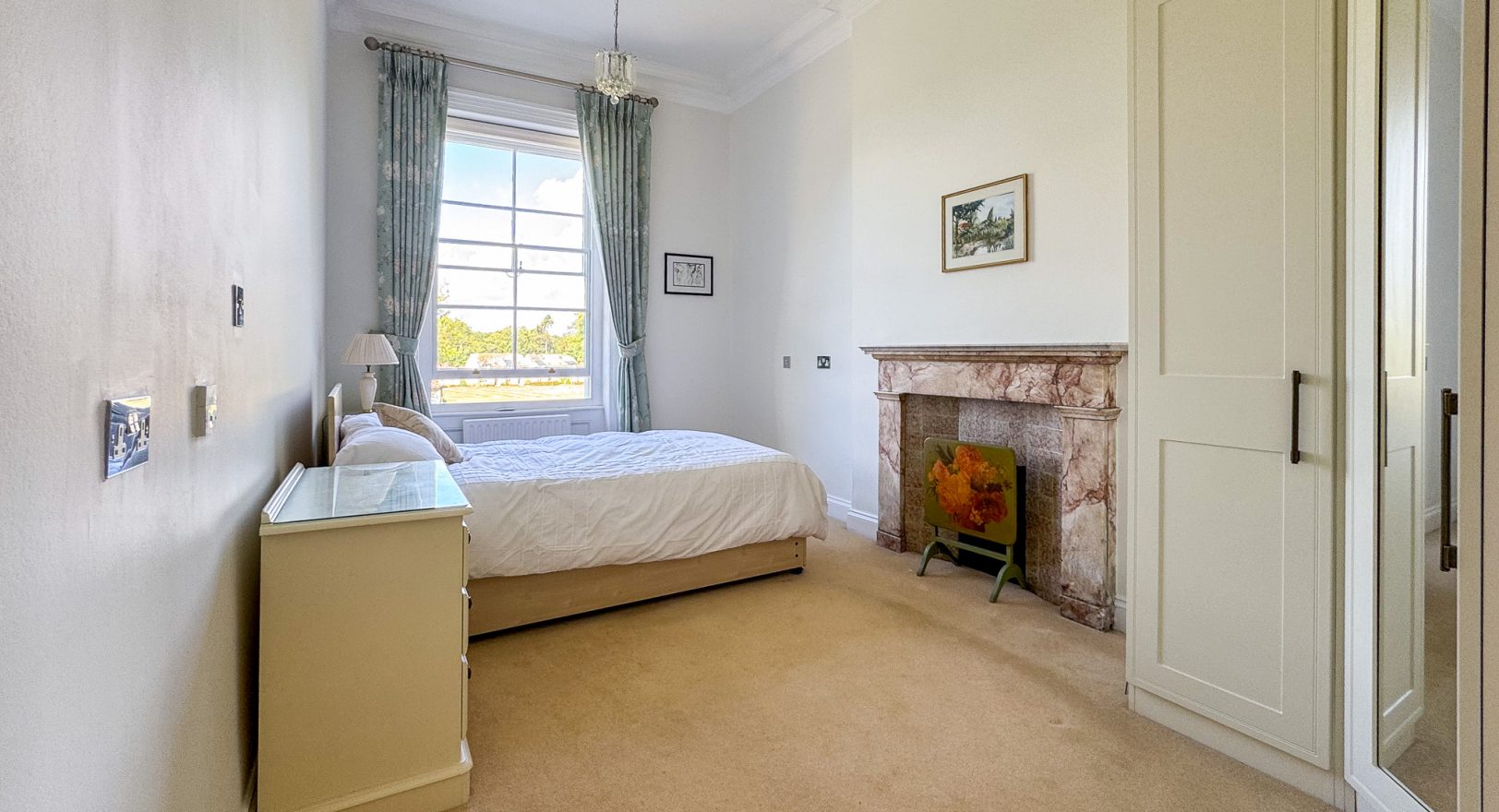 A rare opportunity to purchase this stunning one bedroom, period property located within the refinement of the magnificent French Renaissance style Mansion House. The hallway leads to an impressive drawing room with high ceilings, fireplace and striking dual-aspect feature windows. A modern fitted kitchen with built-in appliances. An impressive double bedroom with built-in wardrobes and fireplace. A modern shower room. With tall windows throughout, the apartment is bright and spacious, with an unrivalled position with extensive bird’s-eye views over the grounds.